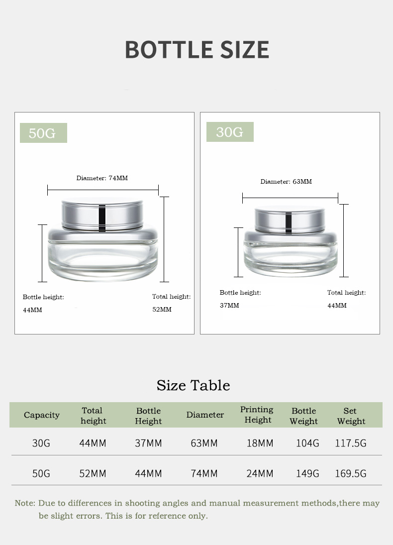 30g 50g flat-bottom cream bottle series with lids