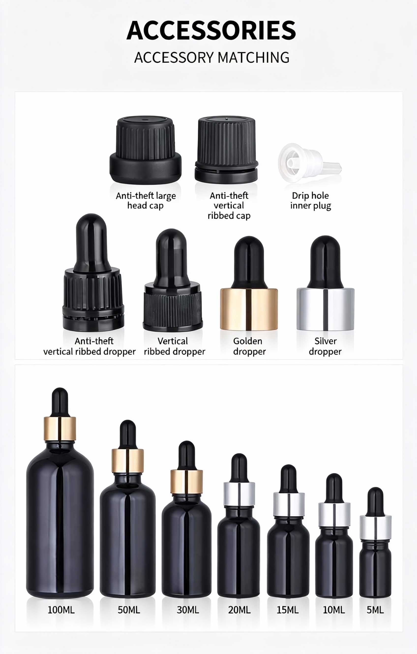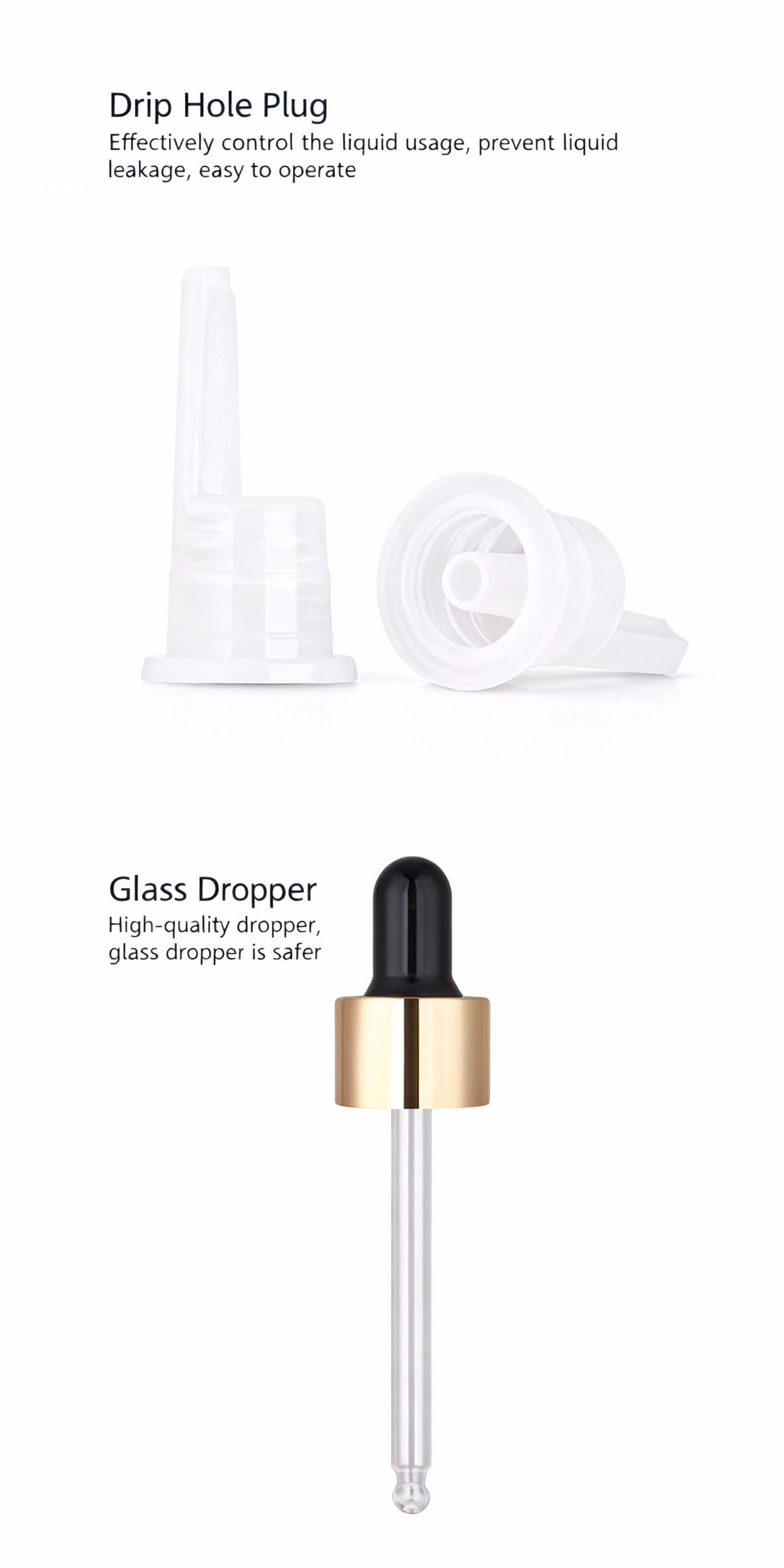 The boston round glass bottle come with Bamboo Lotion Top,glasss dropper cap,perfect for bottling massage oil, essential oil, herbal extracts and skincare lotion and oils.
