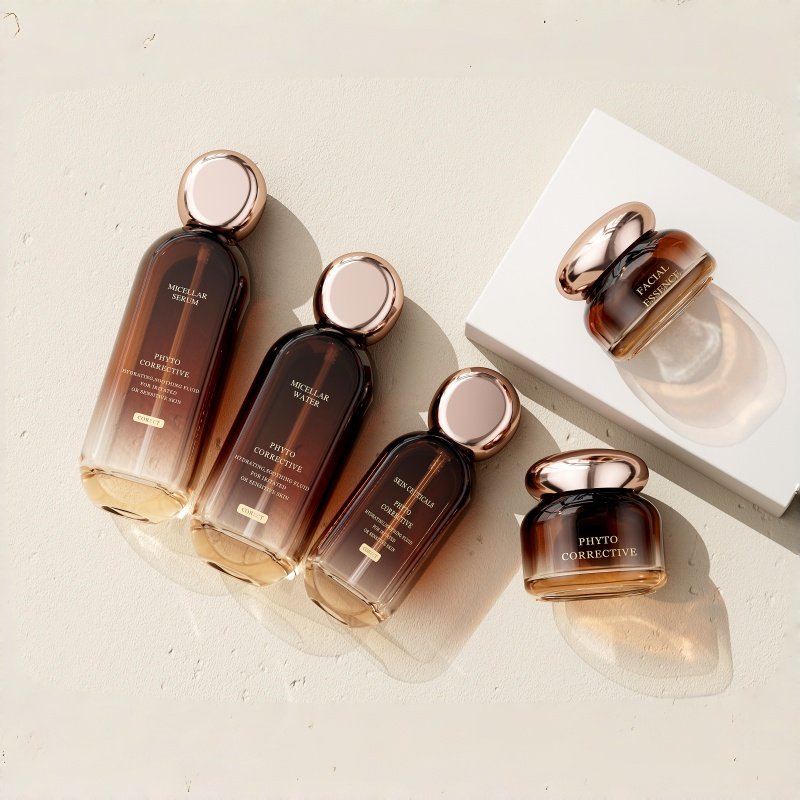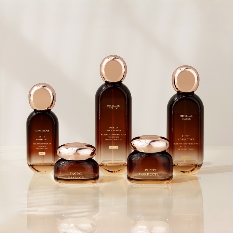 This flat square cosmetic set bottle customization is a very popular way of custom cosmetic packaging. This type of set bottle generally has a flat appearance and a square shape, and is relatively simple and elegant in appearance design, which is very suitable for high-end cosmetic brands.